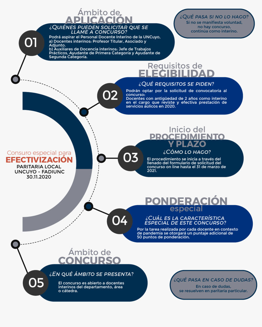 Un gran avance en la Paritaria Particular Docente. El lunes 30 de noviembre del pasado 2020, se firmó el acta paritaria entre la UNCUYO y FADIUNC. Es un avance en el reconocimiento del trabajo desarrollado en virtualidad durante la pandemia. Compartimos información completa y actualizada sobre los Concursos Especiales para Efectivización.